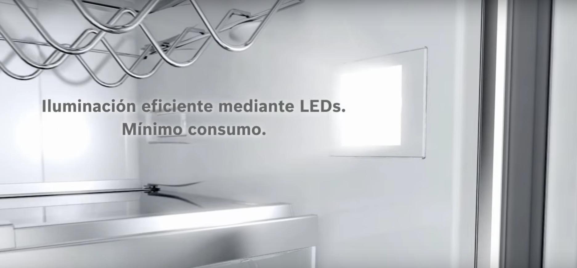 Los frigoríficos Bosch tienen iluminación interior con LED, lo que ayuda a la reducción del consumo energético global del frigorífico y además le da más iluminación a todo el interior. Los frigoríficos Bosch KGN39XI45 tamień incorporan al bandeja de cristal de seguridad extensibles en refrigerador y el botellero abatible.