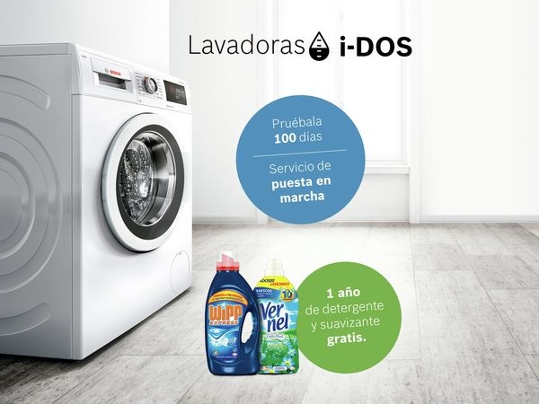 La promoción consiste en que, aquellos usuarios que adquieran una lavadora i-DOS del catálogo de Bosch entre el 1 de septiembre de 2017 y el 28 de febrero de 2018 y la registren en My Bosch (https://secure.boschhome.es/mybosch), recibirán como regalo un año de detergente y suavizante, formado por 8 botellas de Wipp Express Gel 22d (1364ml) y 3 botellas de Vernel Azul 54+3d (1311ml).